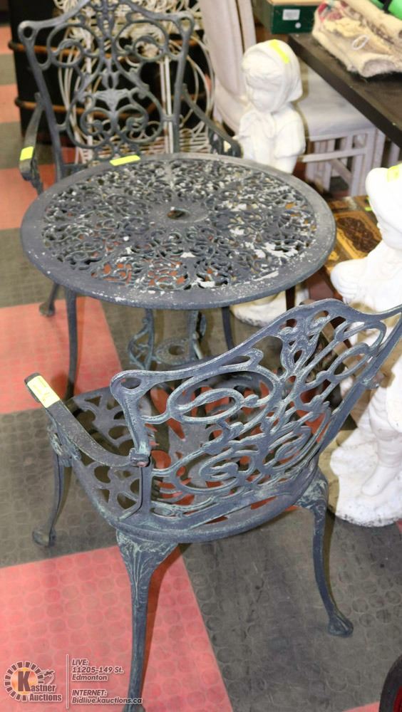 CAST IRON PATIO TABLE WITH 2 CHAIRS