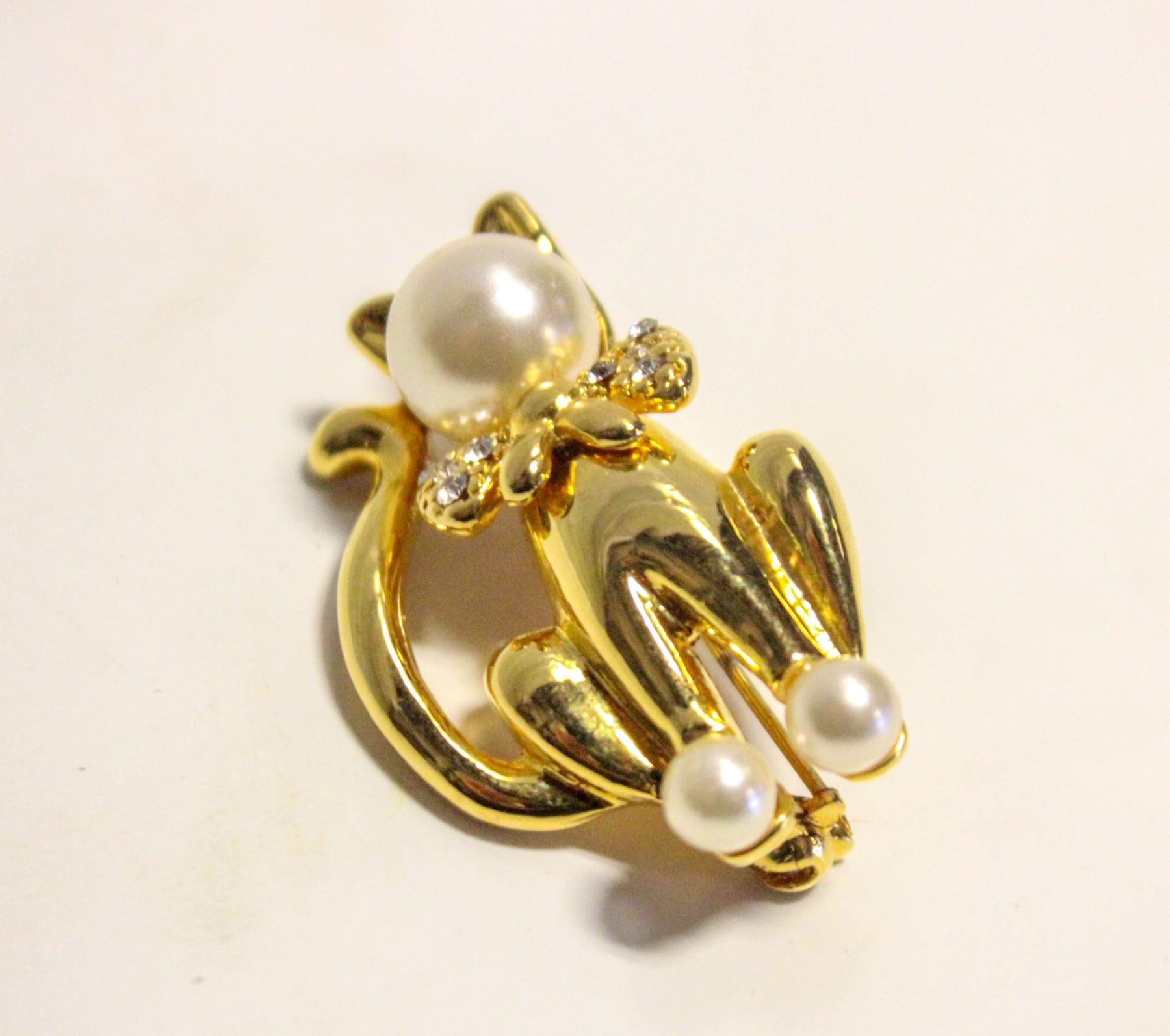 CAT FAUX PEARL BROOCH