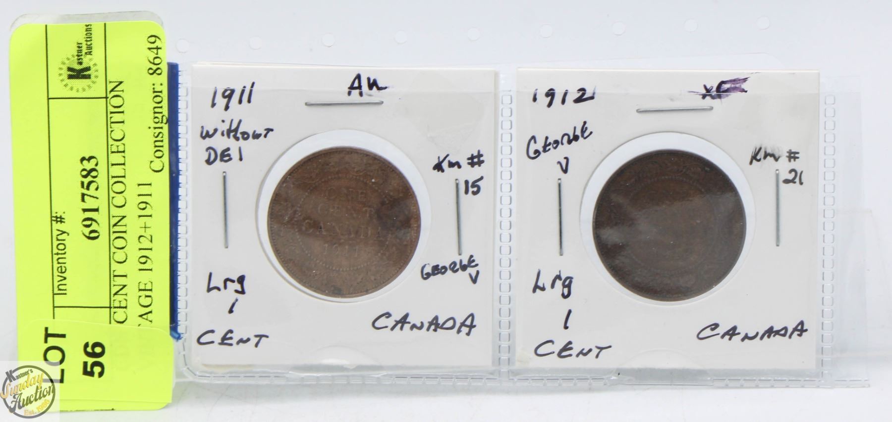 CDN CENT COIN COLLECTION VINTAGE 1912+1911