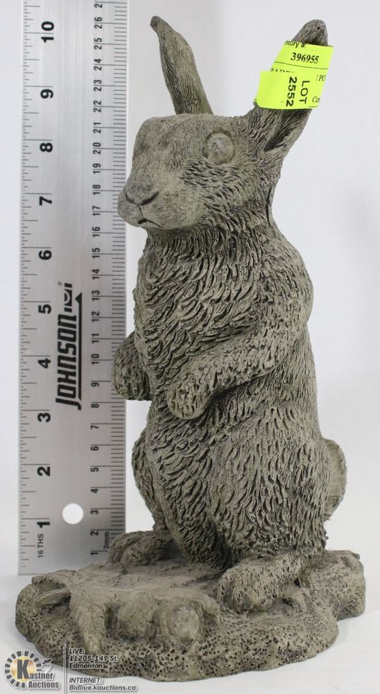 CEMENT RABBIT WITH POT LEAF STATUE