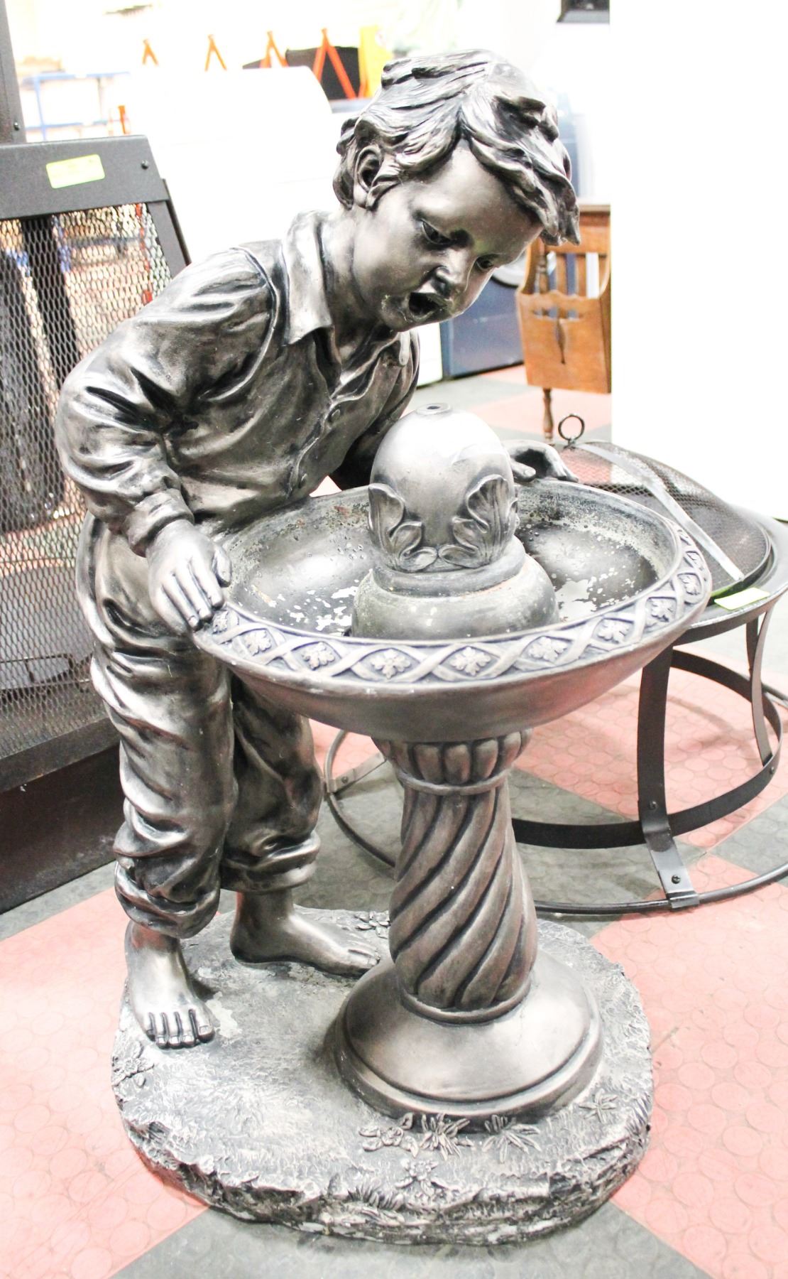 CERAMIC BOY BIRD BATH STATUE 37" TALL