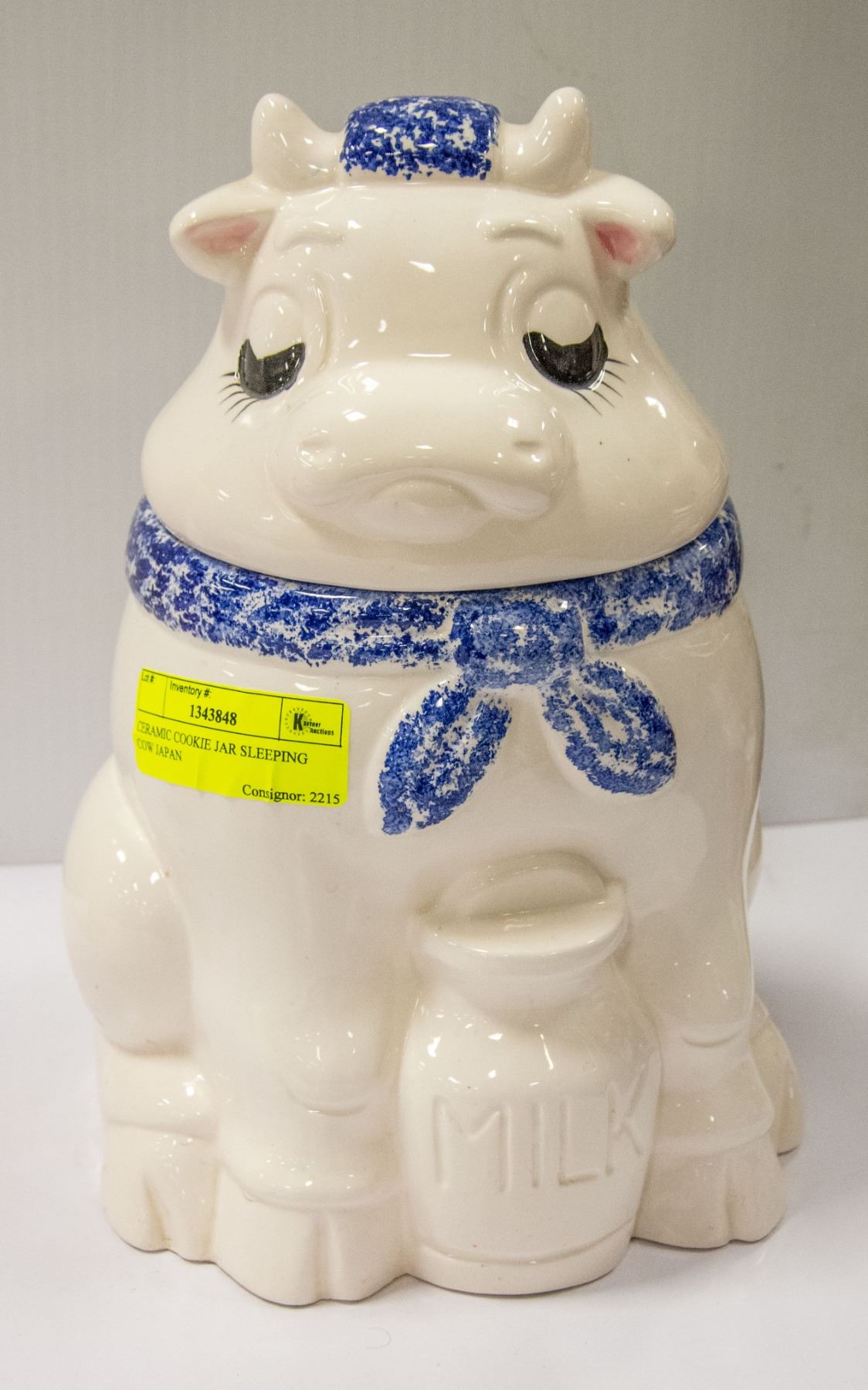 CERAMIC COOKIE JAR SLEEPING COW JAPAN