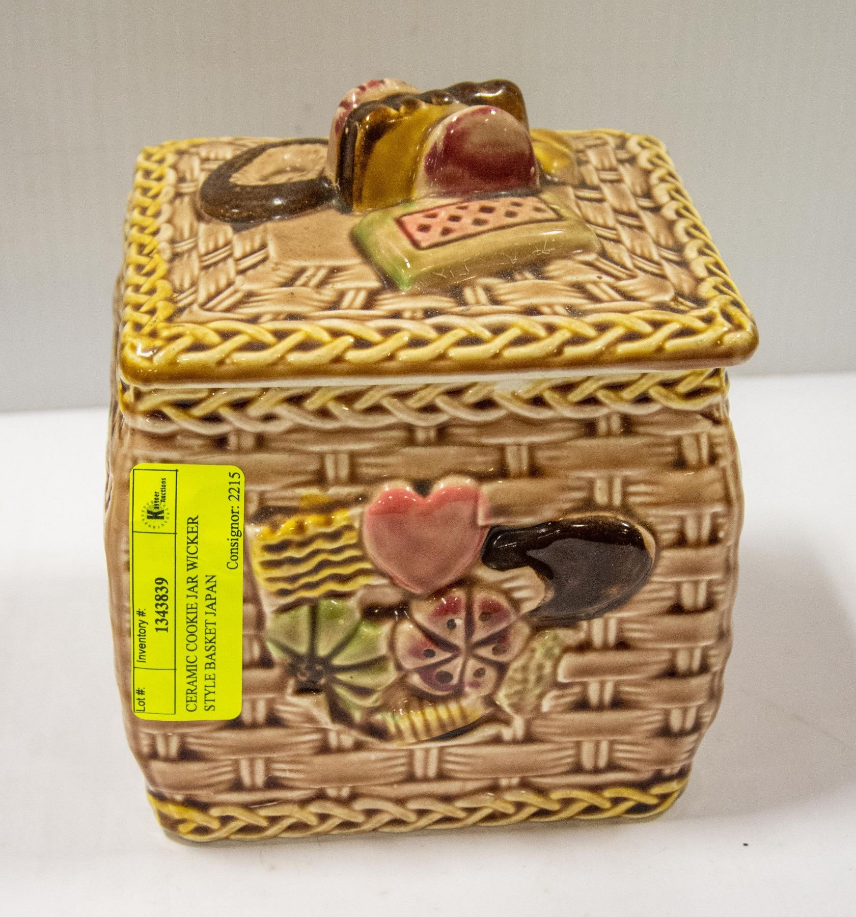 CERAMIC COOKIE JAR WICKER STYLE BASKET JAPAN