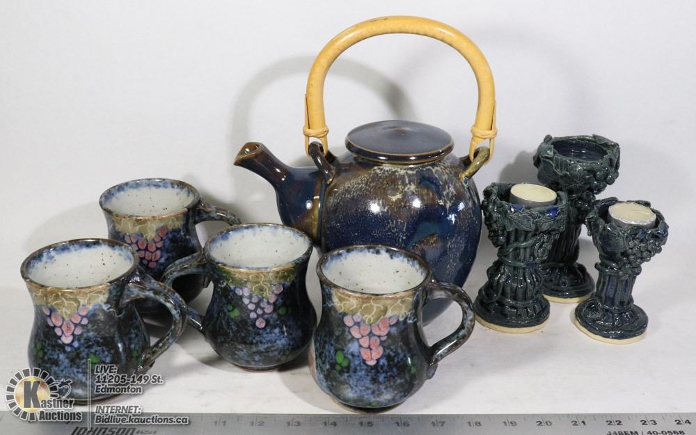 CERAMIC TEA SET WITH SET OF CANDLE HOLDERS