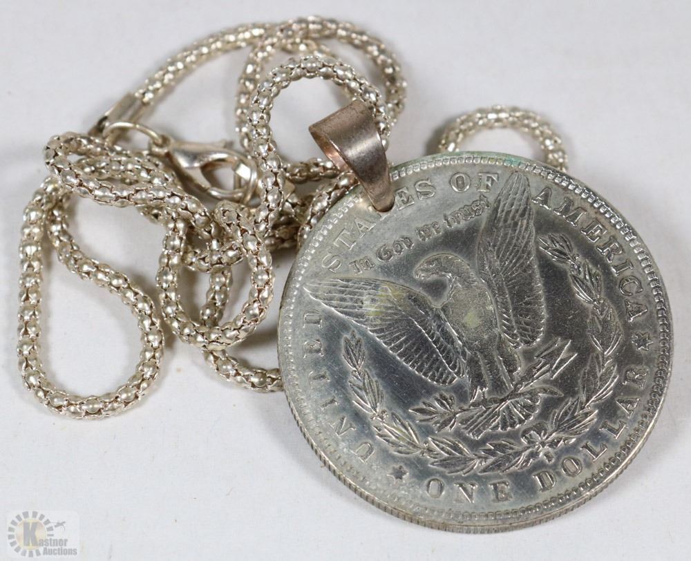 CHAINED NECKLACE WITH US $1 COIN PENDANT