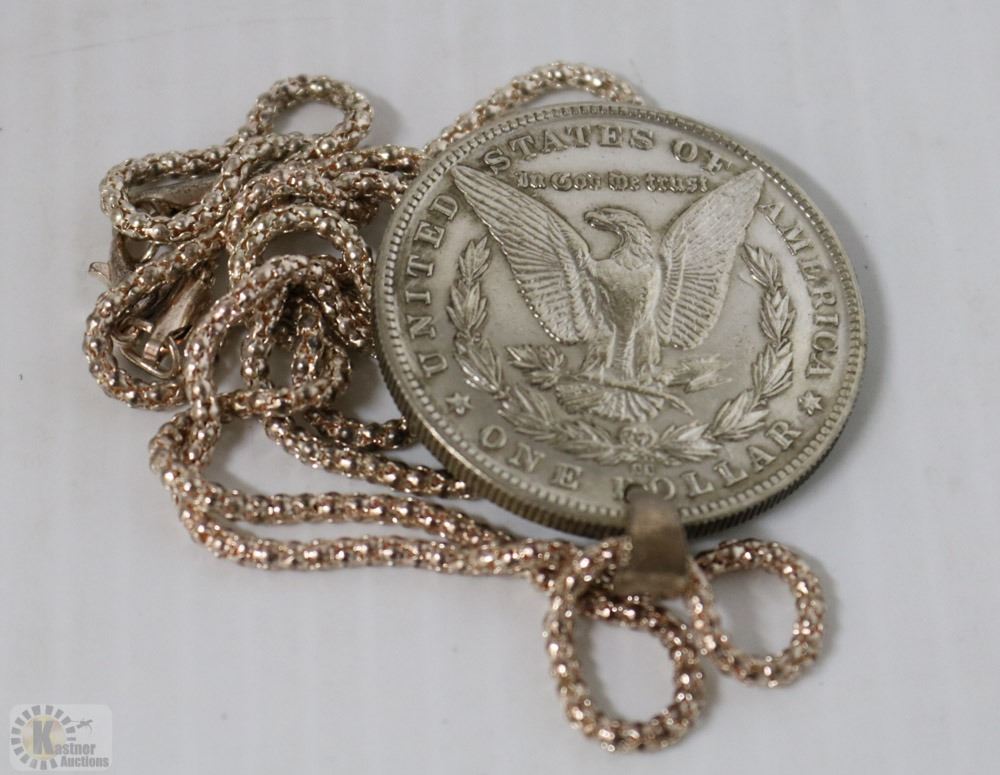 CHAINED NECKLACE WITH US $1 COIN PENDANT