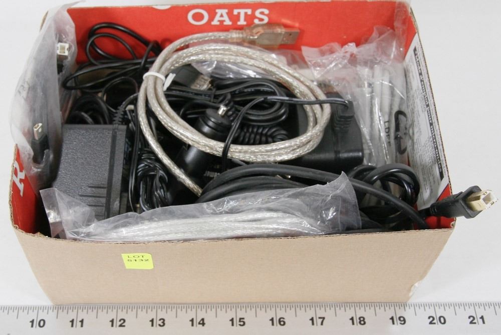 FLAT FULL OF DIFFERENT COMPUTER CORDS ETC.