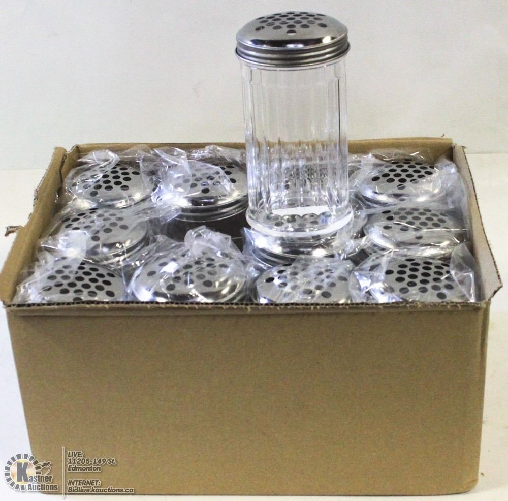 NEW CHEESE OR PEPPER SHAKERS LOT OF 12 - AS THEY COME IN CATALOGUE ORDER