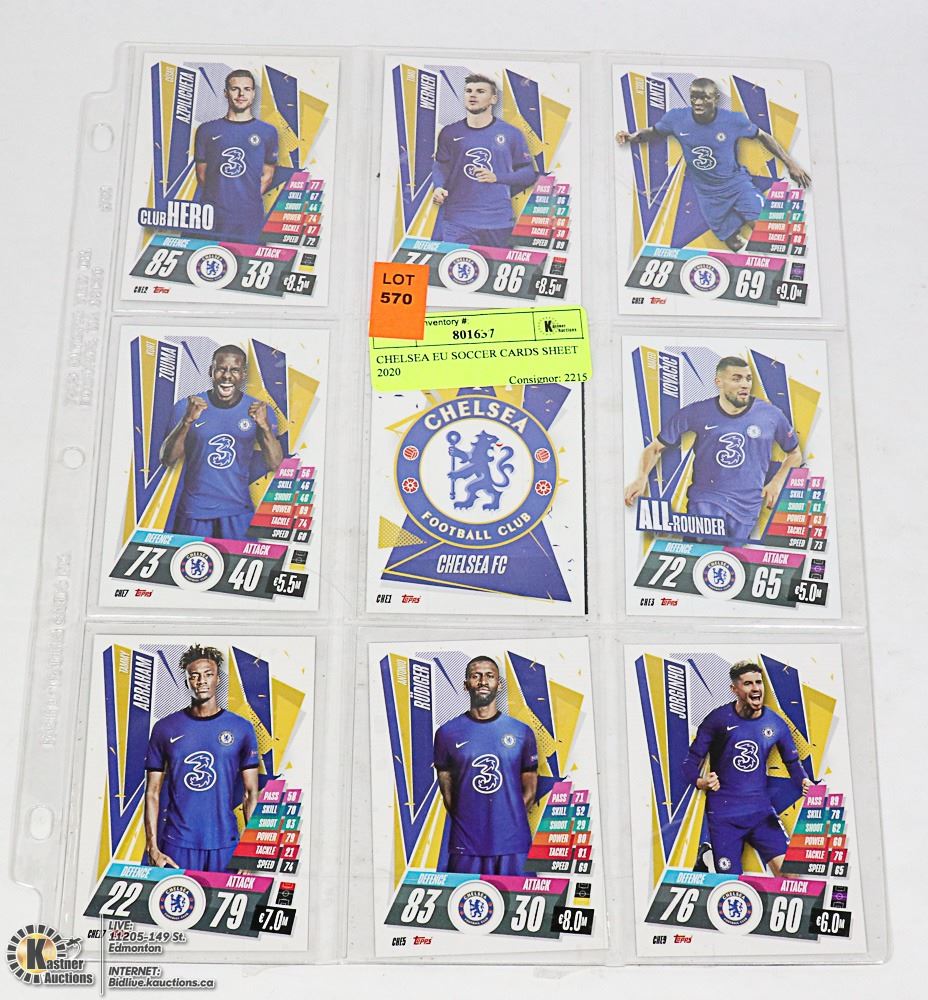 CHELSEA EU SOCCER CARDS SHEET 2020