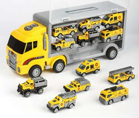 CHILDREN'S CONTAINER TRUCK TOY ALLOY SIMULATION FIRE TRUCK ENGINEERING (1 BIG CAR + 6 SMALL CARS)