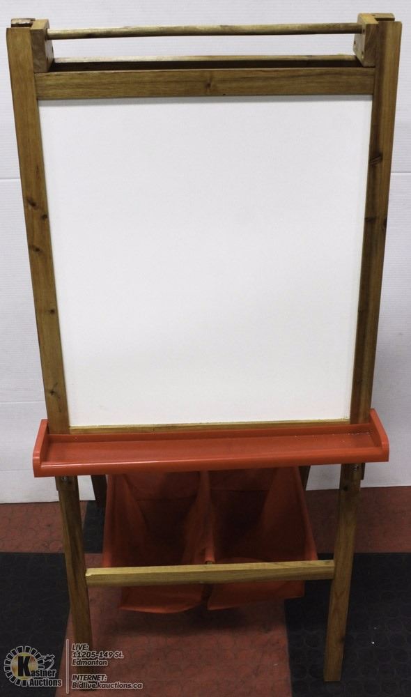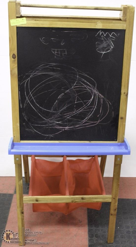 CHILDRENS CHALK/WHITE BOARD EASEL WITH STORAGE