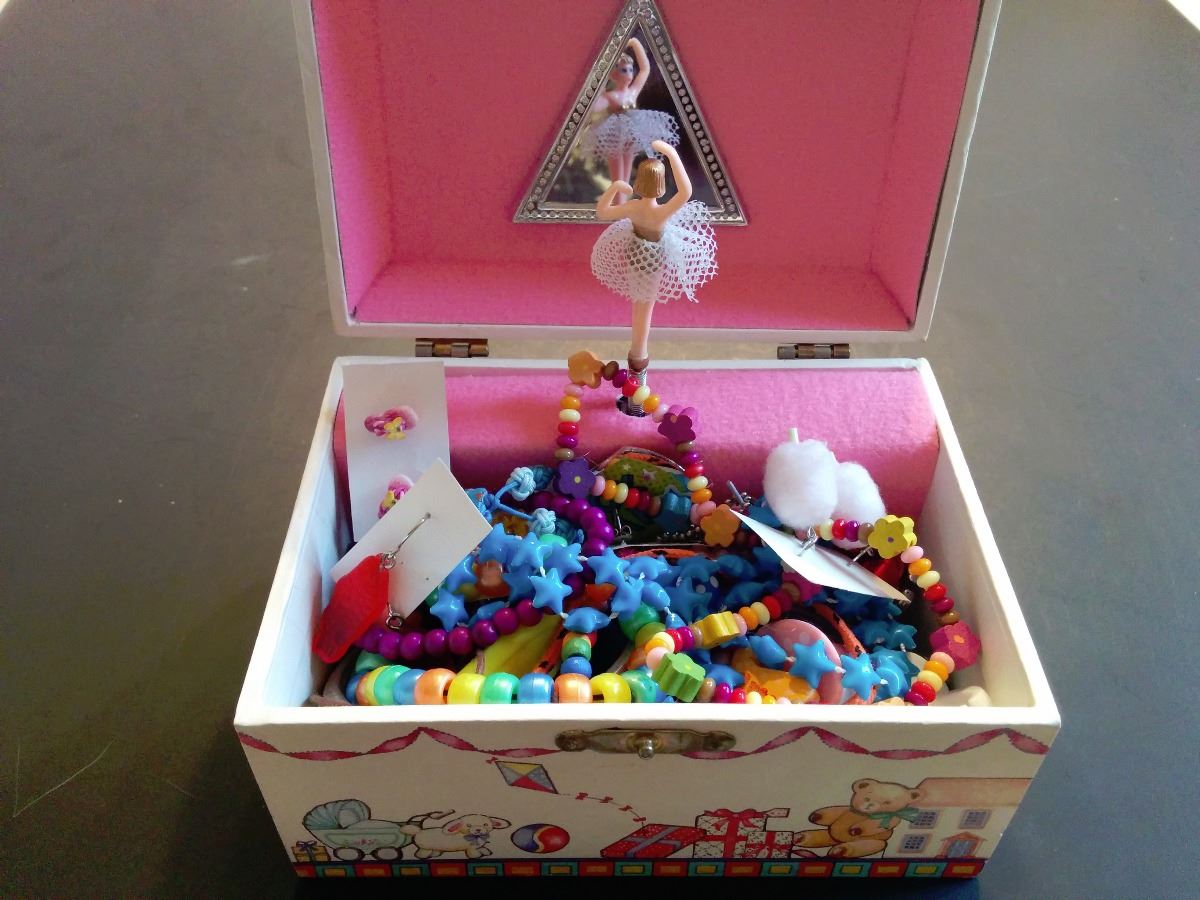 CHILDRENS MUSICAL JEWELLERY BOX & CONTENTS