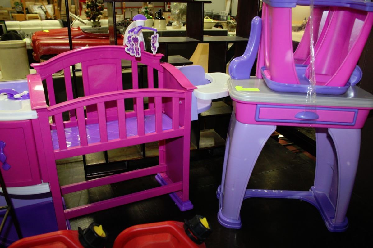 CHILDRENS VANITY SET, SOLD WITH DOLL CRIB