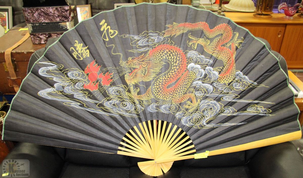 CHINESE DRAGON WALL HANGING FAN 62.5"L X34"H