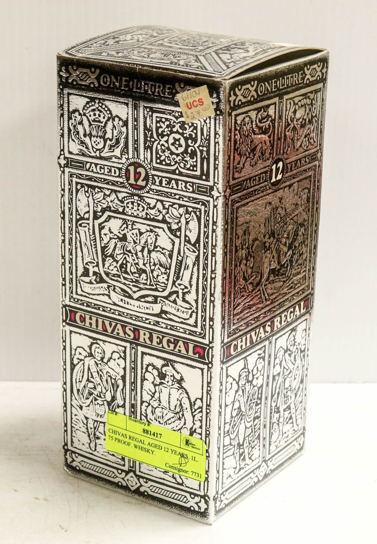 CHIVAS REGAL AGED 12 YEARS. 1L. 75 PROOF. WHISKY.