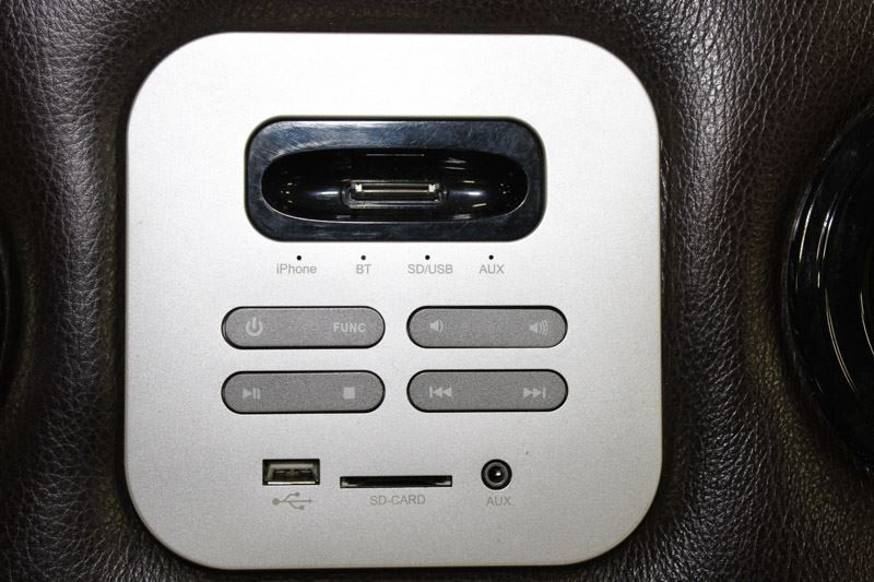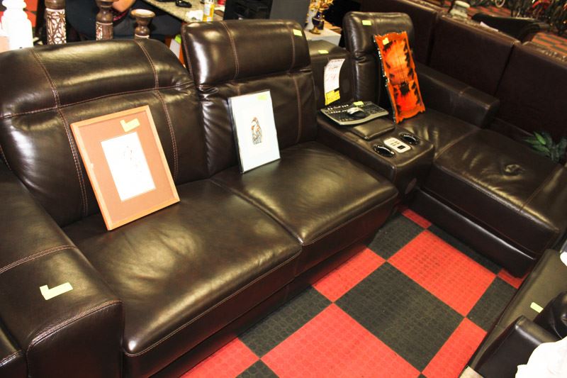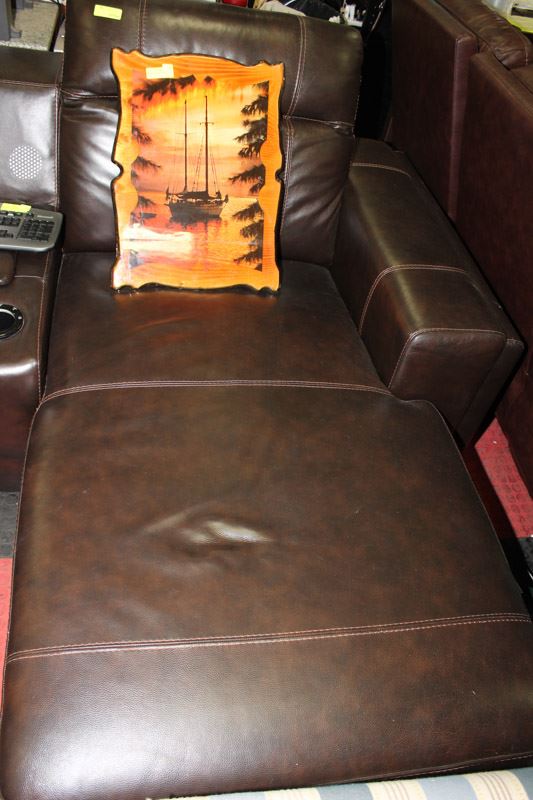 SECTIONAL WITH CONSOLE - CONSOLE INCLUDES IPOD DOCKING STATION, BUILT IN SPEAKERS, STORAGE, LIGHT UP & DRINK CHILLING CUP HOLDERS, USB PORT, SD CARD SLOT, AUXILLARY PORT 135" WIDE X 69" DEEP