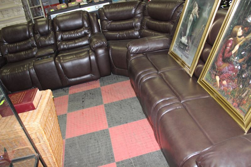 CHOCOLATE BROWN LEATHER RECLINING SECTIONAL