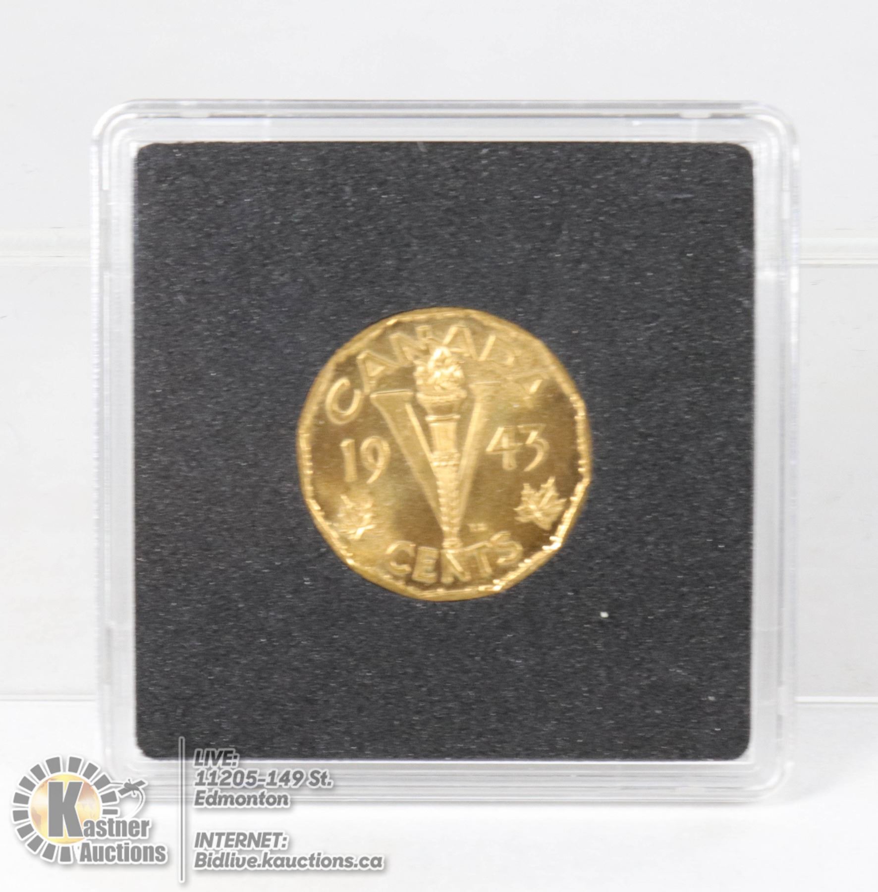 MADE FROM WW2 SHELL CASINGS DUE TO NICKEL SHORTAGE DURING THE WAR, THIS BEAUTIFUL BRASS 5 CENT IS QUITE RARE IN HIGH MINT STATE GRADES.FIRST YEAR OF V DESIGN.