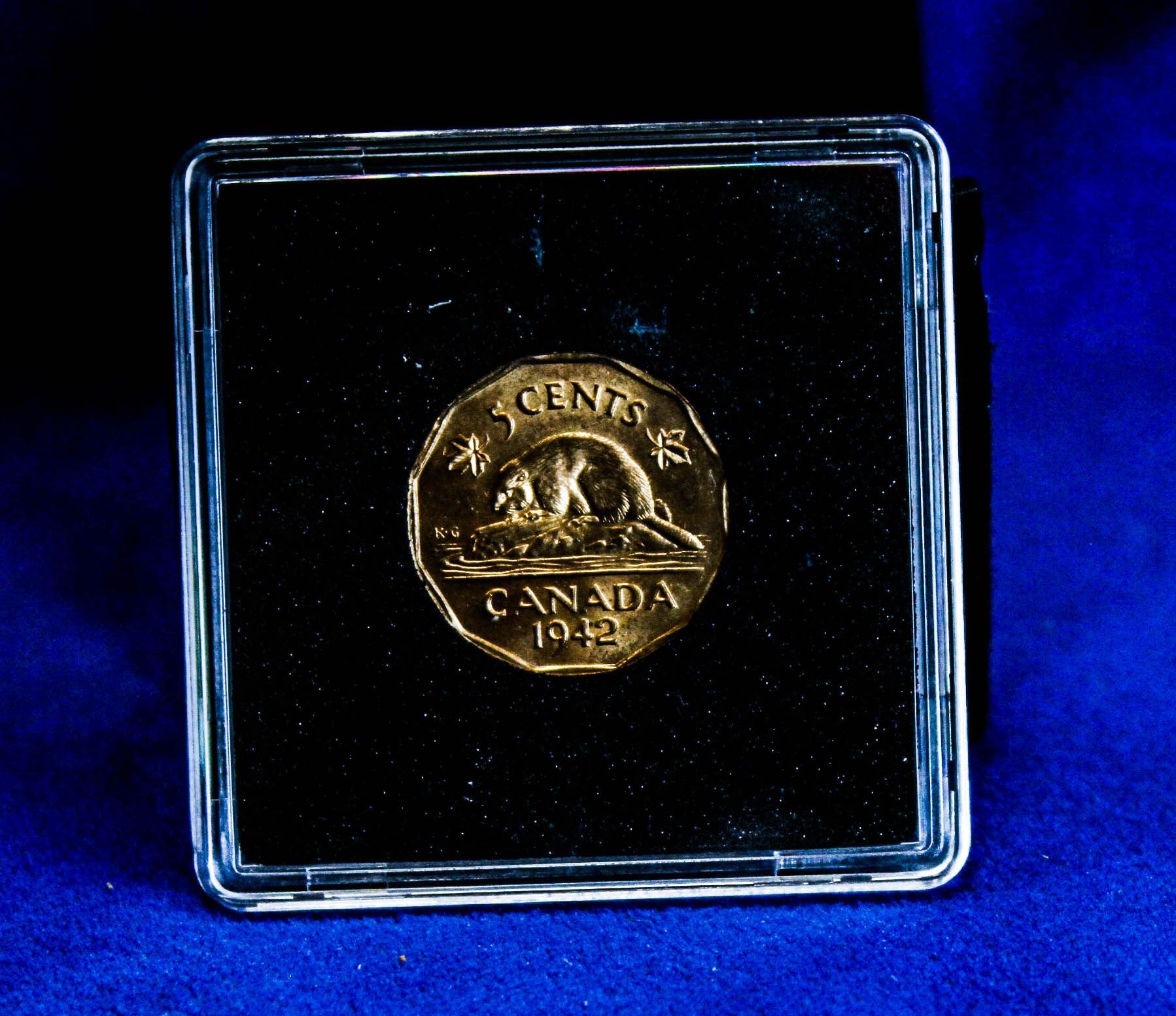 CHOICE UNCIRCULATED 1942 TOMBAC BRASS CANADA 5 CEN