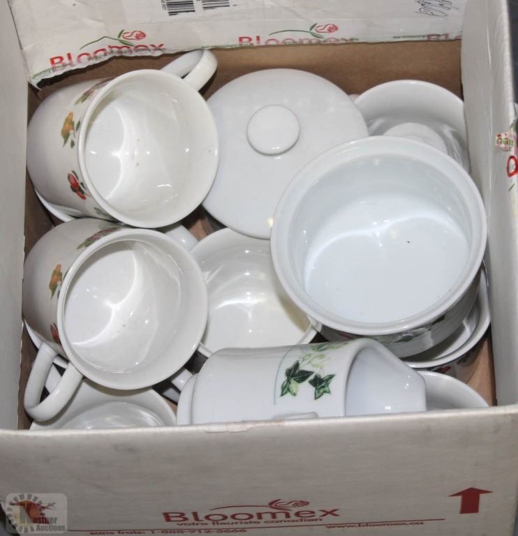 INCLUDES CUPS CREAMER SUGAR BOWL SALT AND PEPPER SHAKERS
