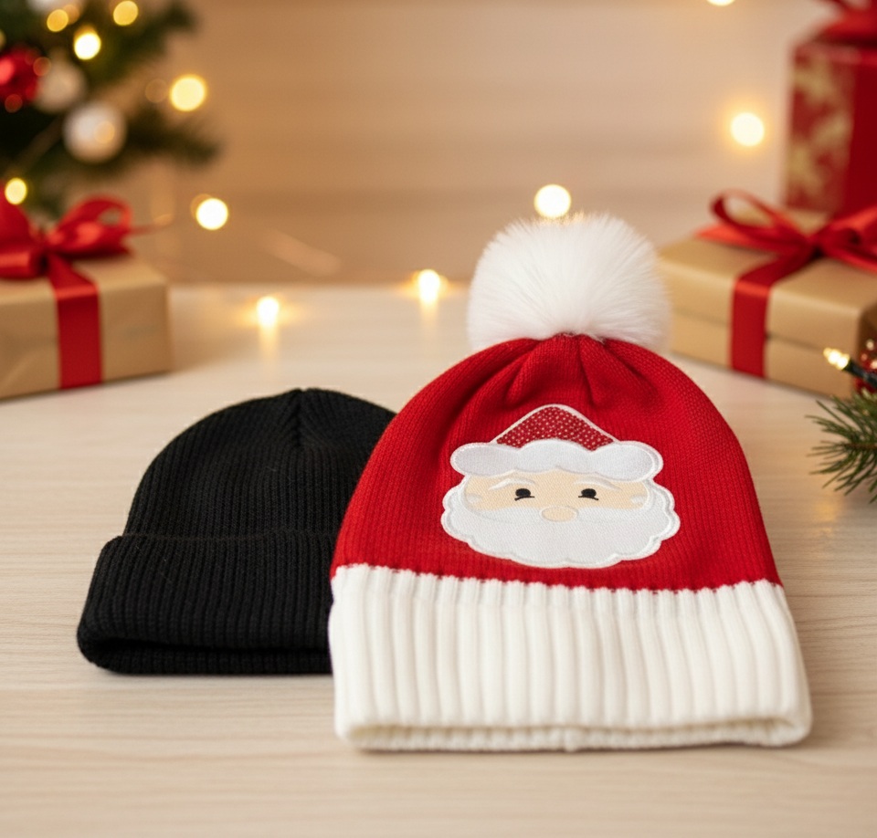 CHRISTMAS HAT WINTER WARM KNITTED SANTA HAT GIFT UNISEX RED