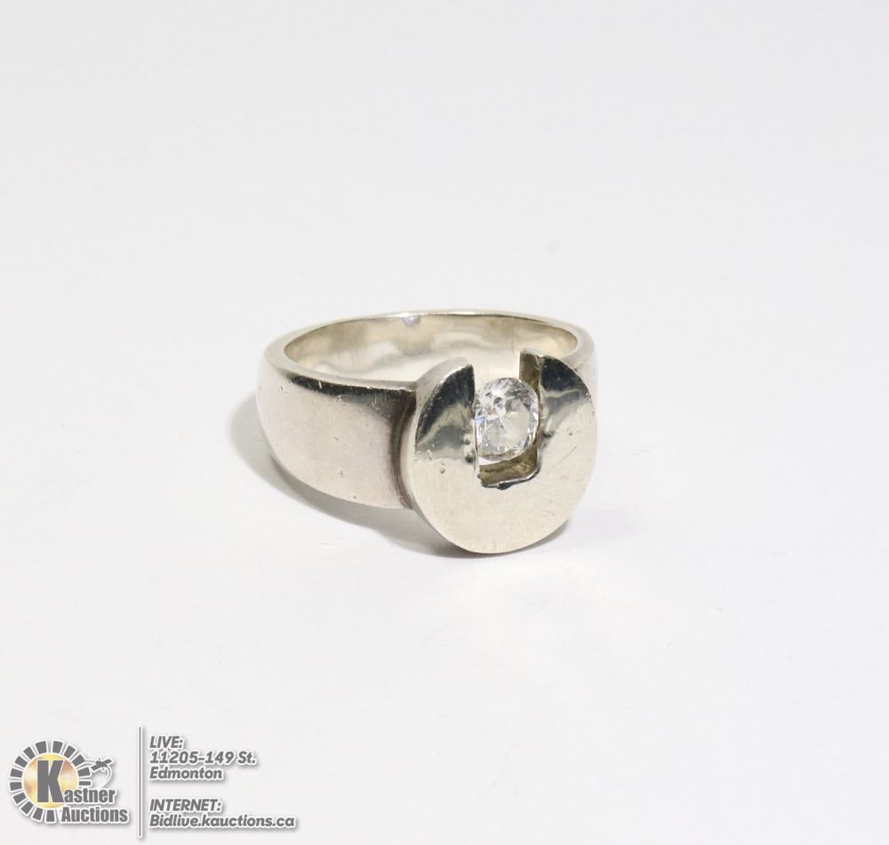 925 SILVER RING WITH CENTRAL FAUX DIAMOND IN HORSESHOE SHAPE SETTING. SIZE 8