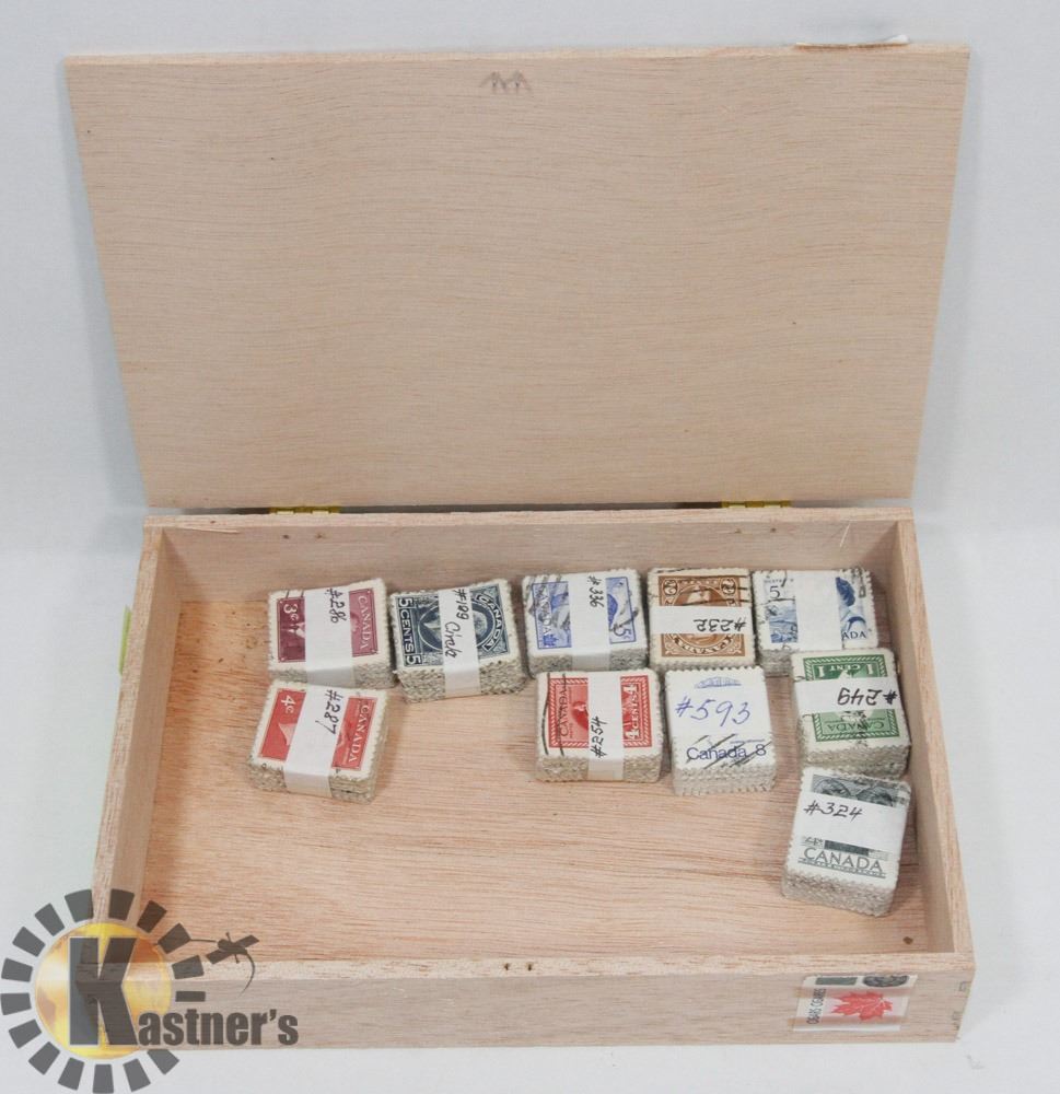 CIGAR BOX FILLED WITH 10 X 100 CANADIAN STAMPS
