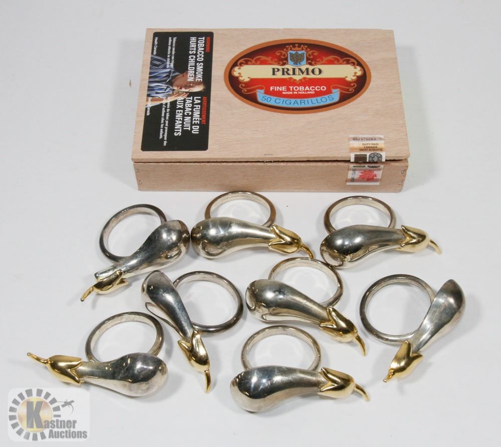 CIGAR BOX FILLED WITH 8 VINTAGE NAPKIN HOLDERS