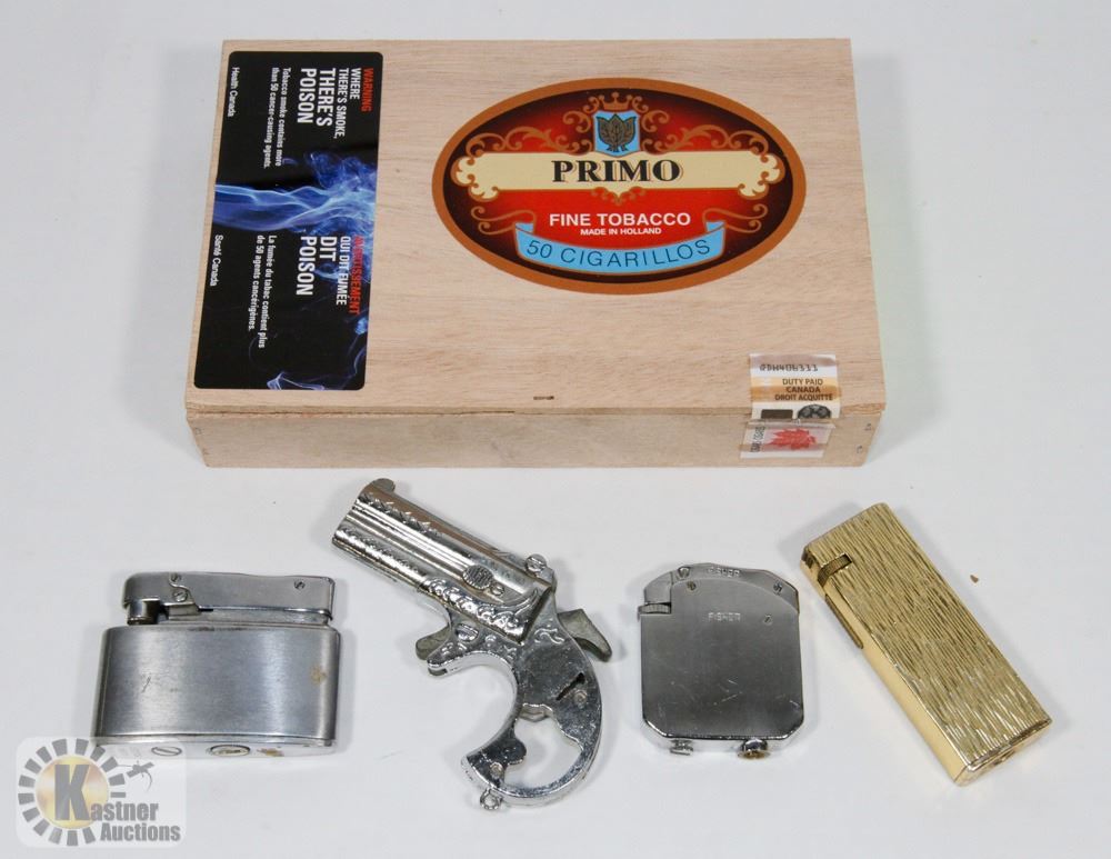 CIGAR BOX OF OLD LIGHTERS