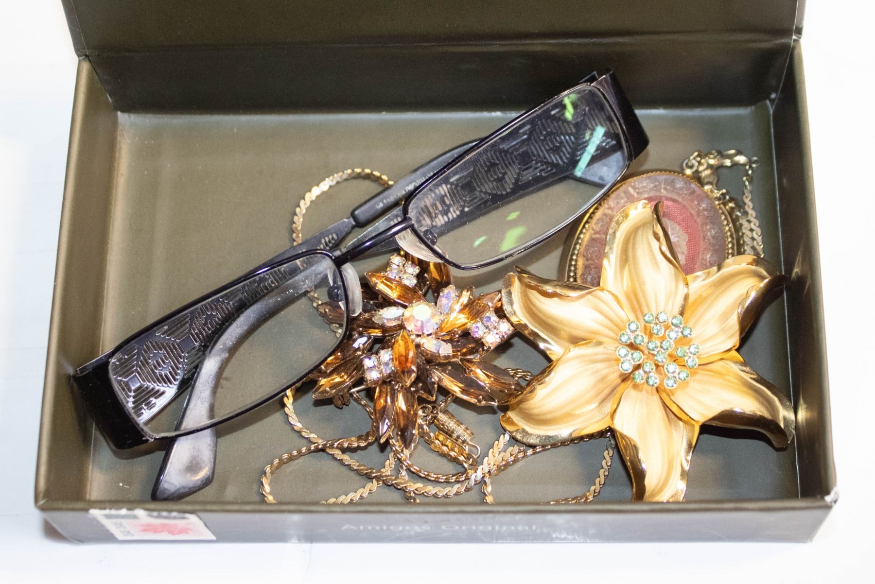 CIGAR BOX WITH ARMANI GLASSES, PENDANT /W CHAIN &