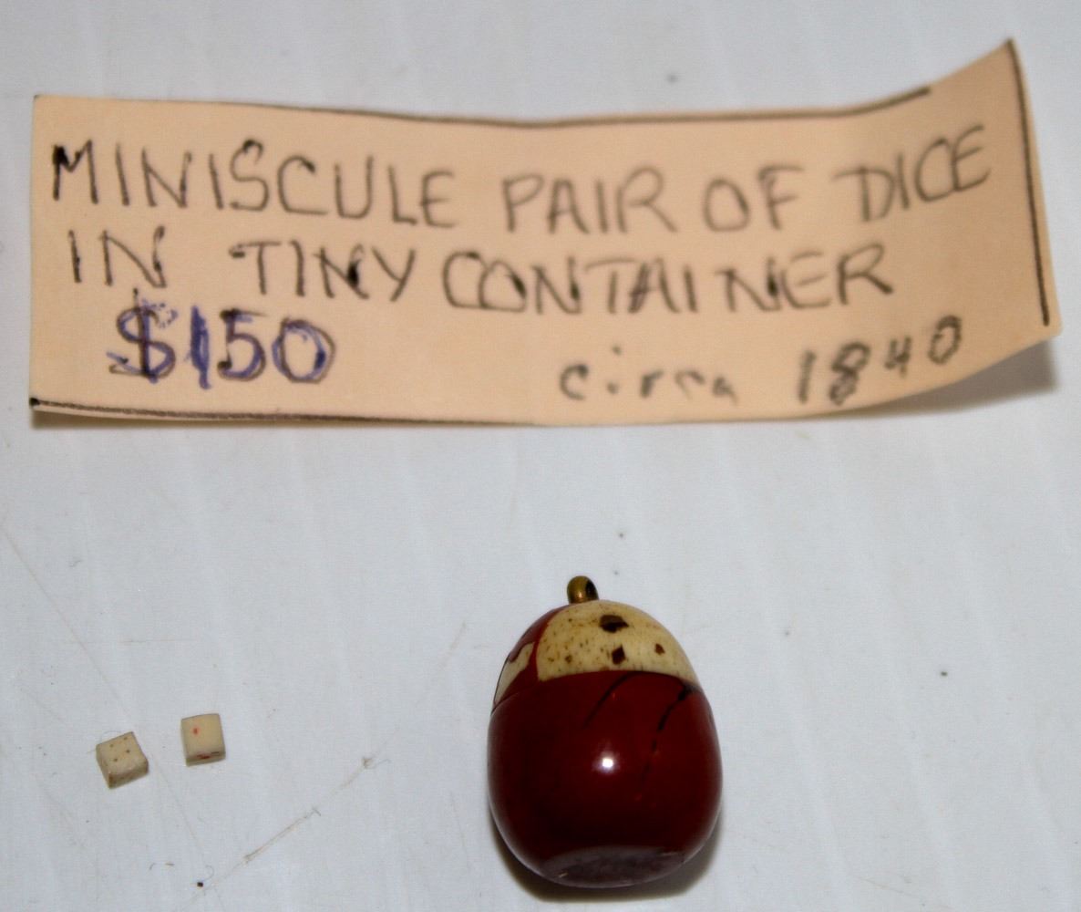 CIRCA 1840 MINISCULE PAIR OF DICE IN TINY CASE