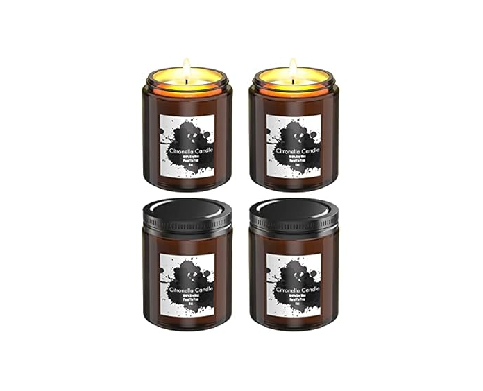 CITRONELLA CANDLES ORGANIC SCENTED CANDLES NATURAL SOY WAX CANDLES, ROUND GLASS OUTDOOR INDOOR JAR SCENTED CANDLES FOR GARDEN PATIO PORCH, 4 X 8 OZ