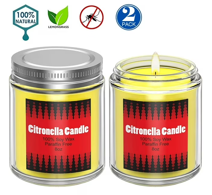 CITRONELLA CANDLES SET 2, 2 X 8 OZ EACH SCENTED CANDLE NATURAL SOY WAX, OUTDOOR AND INDOOR,50 HOURS BURN TIME, 2 PACK