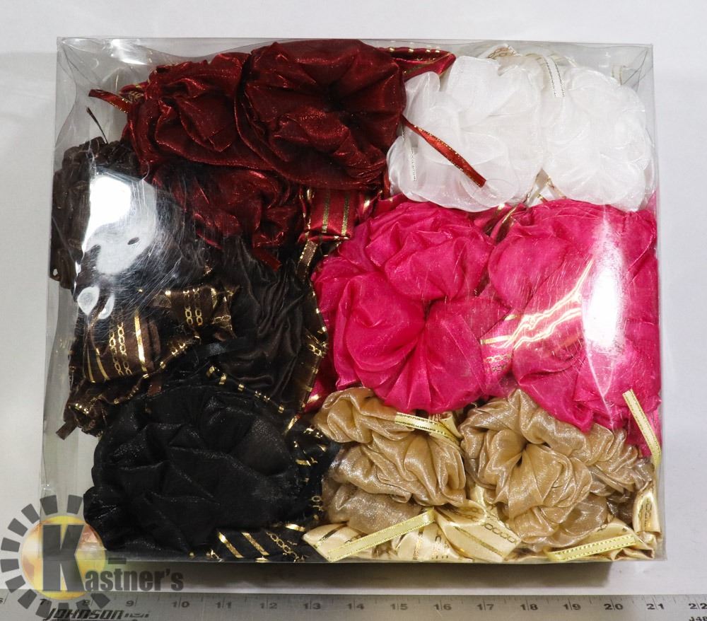 CLEAR BOX OF DECORATIVE HAIR CLIPS