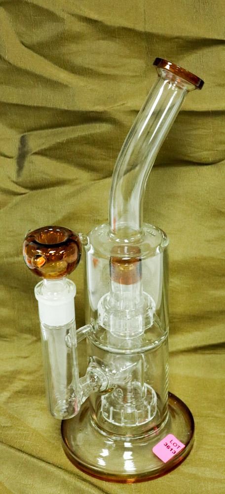 CLEAR/ BR. AMBER GLASS 12.5" WATER BONG