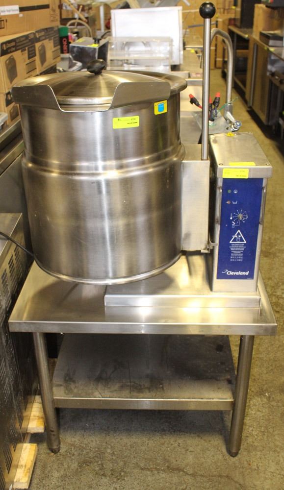 ON STAINLESS STEEL TABLE. 3 PHASE, MODEL # KET-12-T 30" X 30" X 57" - KETTLE 17" DIAMETER, 19" HIGH
