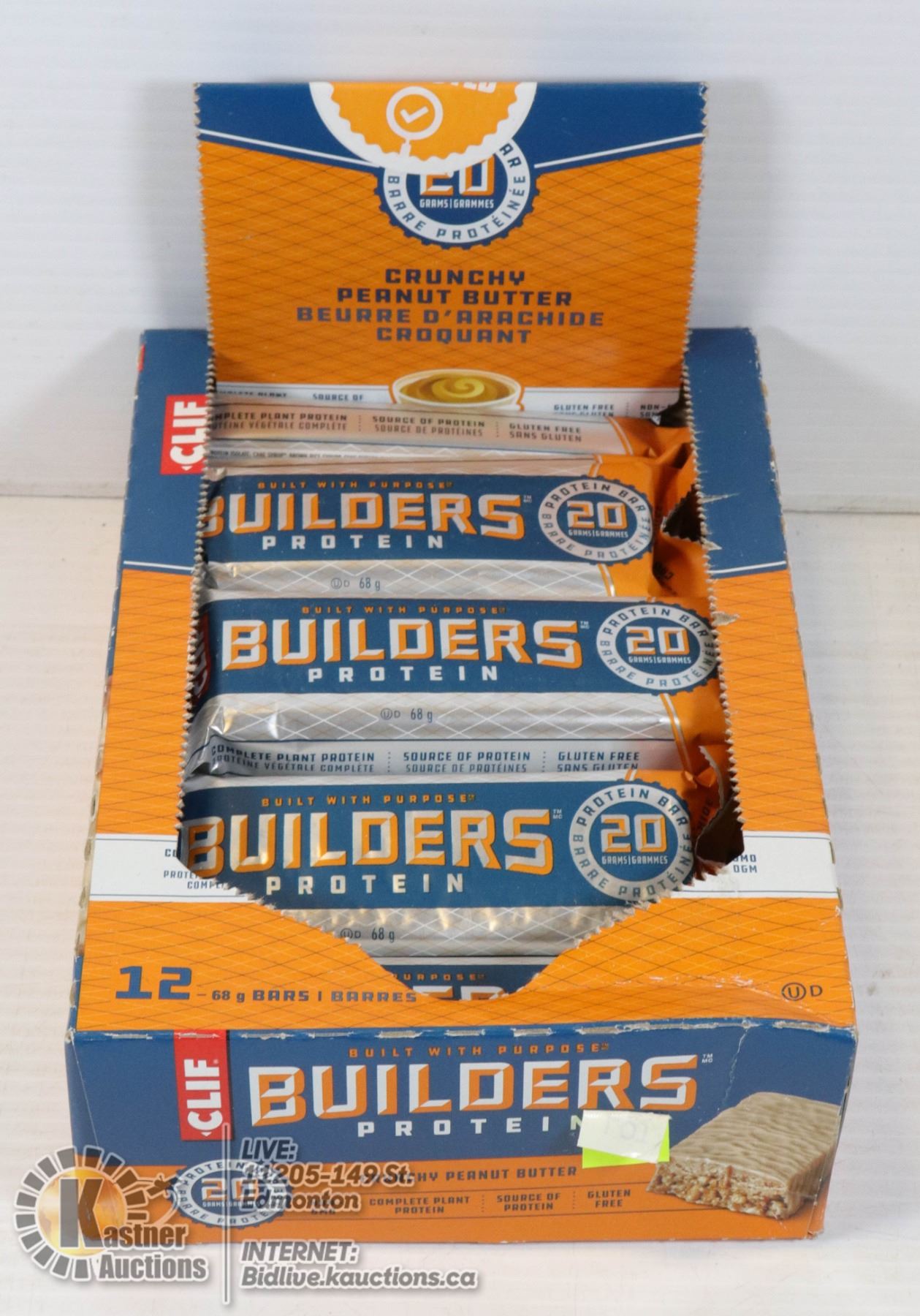 CLIF BUILDERS PROTEIN BARS BOX OF 12, CRUNCHY PEANUT BUTTER. BEST BEFORE MARCH 7 2021