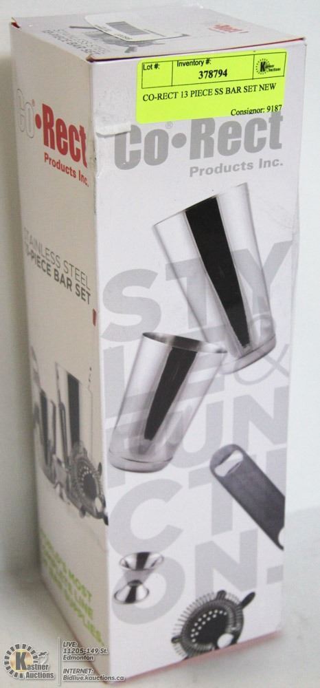 INCLUDES 28OZ & 16OZ SHAKER, BAR SPOON, 3/4OZ & 1-1/4OZ JIGGER, 4-PRONG STRAINER, CORKSCREW, SPEED OPENER, 6 BLACK POUR SPOUTS