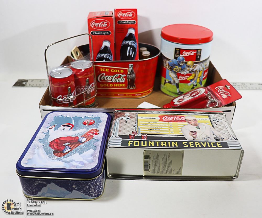 TINS, FLASHLIGHTS, SALT/PEPPER SHAKERS, FRIDGE MAGNETS, HARTOY BEDFORD DELIVERY VAN, ETC. COLLECTIBLES.