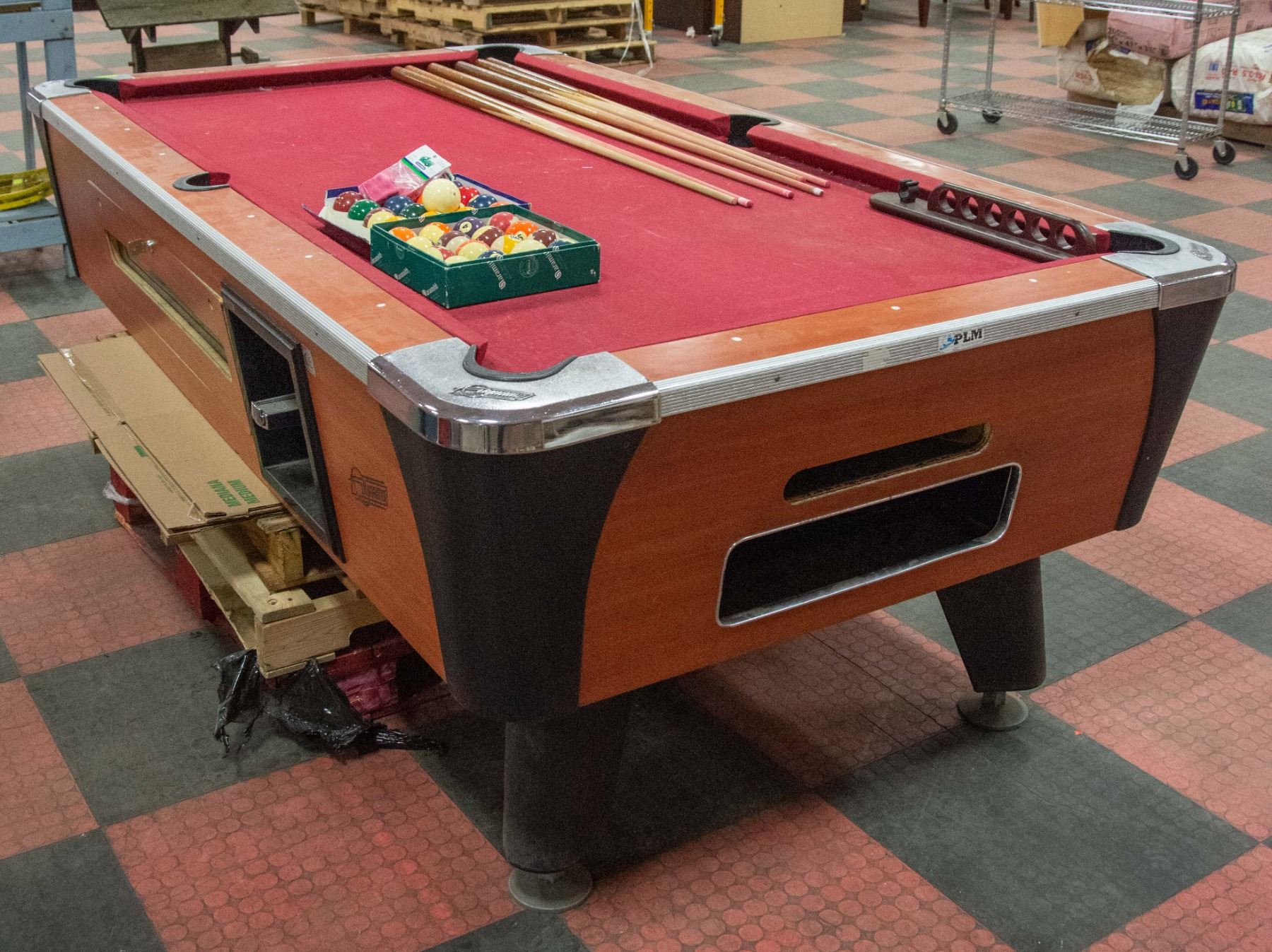 BALLS. 6 POOL CUES.