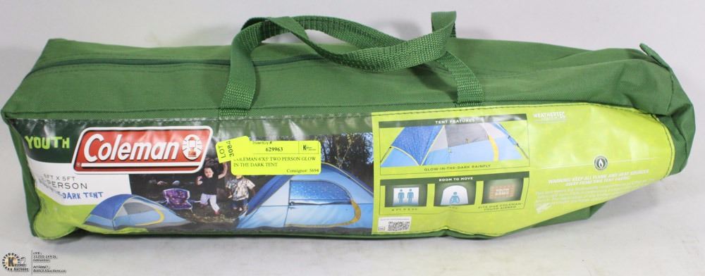 COLEMAN 6'X5' TWO PERSON GLOW IN THE DARK TENT