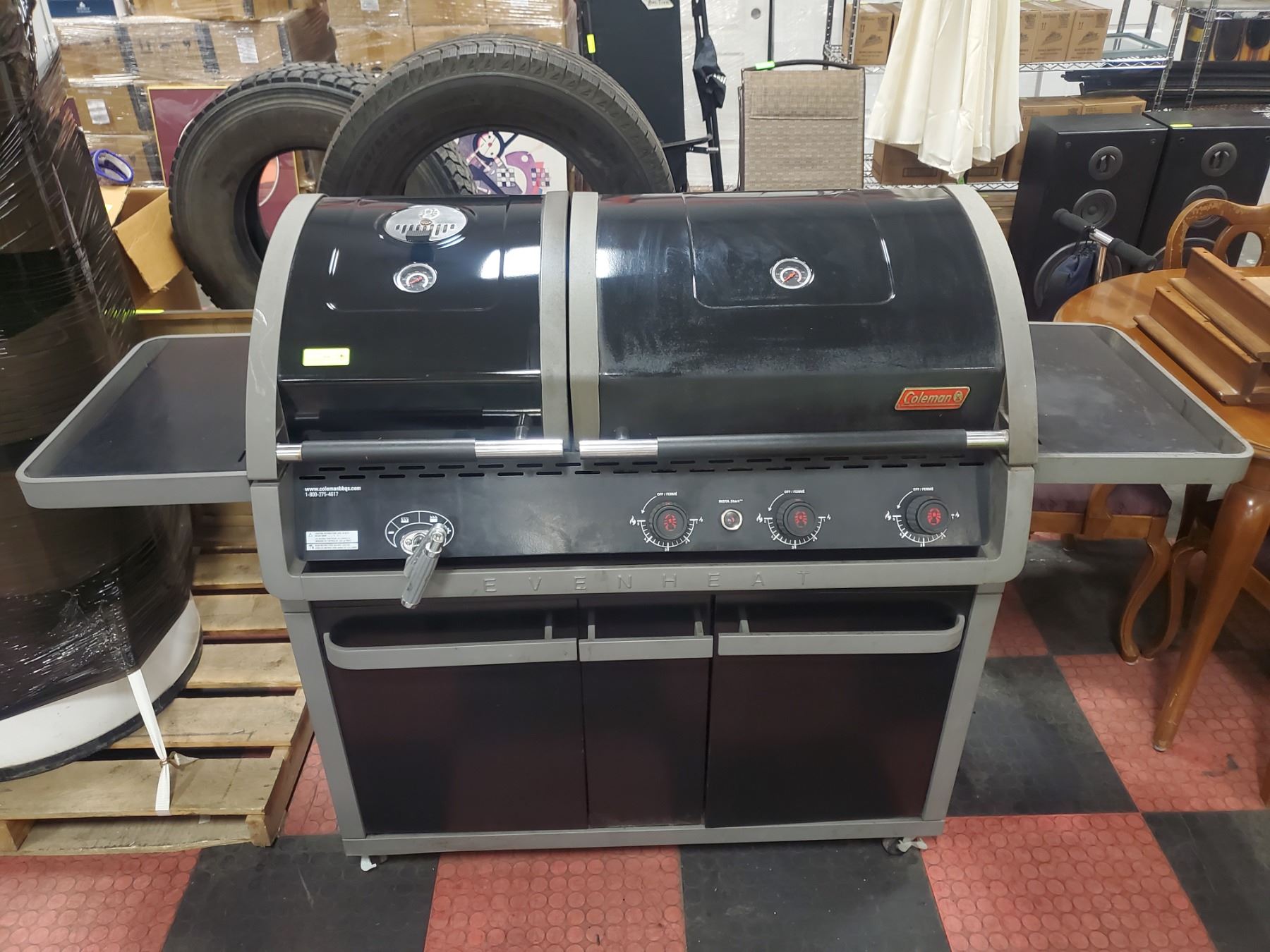 TESTED AND WORKING. M# G53104, NATURAL GAS BURNER: 3 EVENHEAT STAINLESS STEEL BURNERS, INSTA-START ELECTRIC IGNITER(WORKING), DUAL SIDED REVERSIBLE CAST IRON GRILLS, 24" X 18" GRILL AREA W/ 7" TOASTER RACK. CHARCOAL BURNER: CLASSIC PORCELAIN CAST IRON, ASH COLLECTION TRAY, GREASE TRAP EZ CLEAN SYSTEM, COMES W/ CHARCOAL CYLINDER.16" X 18" GRILL AREA W/ 7" TOASTER RACK. TWO 20" X 12" FOLDING SIDE SHELVES. TOTAL BURGER CAPACITY: 47. ACCESSORY HOOKS. MAY NEED REPLACEMENT DEFLECTOR HEATSHIELDS. BOTH TEMPERATURE GAUGES HI-VIS REFLECTION. TOTAL DIMENSIONS: 48"(75" INCLUDING SHELVES) X 24" X 48". ON CASTERS. S# G531041408000002 **ALL ITEMS MUST BE REMOVED BY 5PM SATURDAY, JULY 6TH 2024. ALL REMAINING ITEMS WILL BE SUBJECT TO A $6.00 PER DAY STORAGE CHARGE. ANY ITEMS REMAINING AFTER MONDAY, JULY 22ND 2024 WILL BE CONSIDERED FORFEITED. NO REFUNDS WILL BE ISSUED FOR FORFEITED ITEMS. TO SCHEDULE A PICK UP APPOINTMENT CLICK HERE