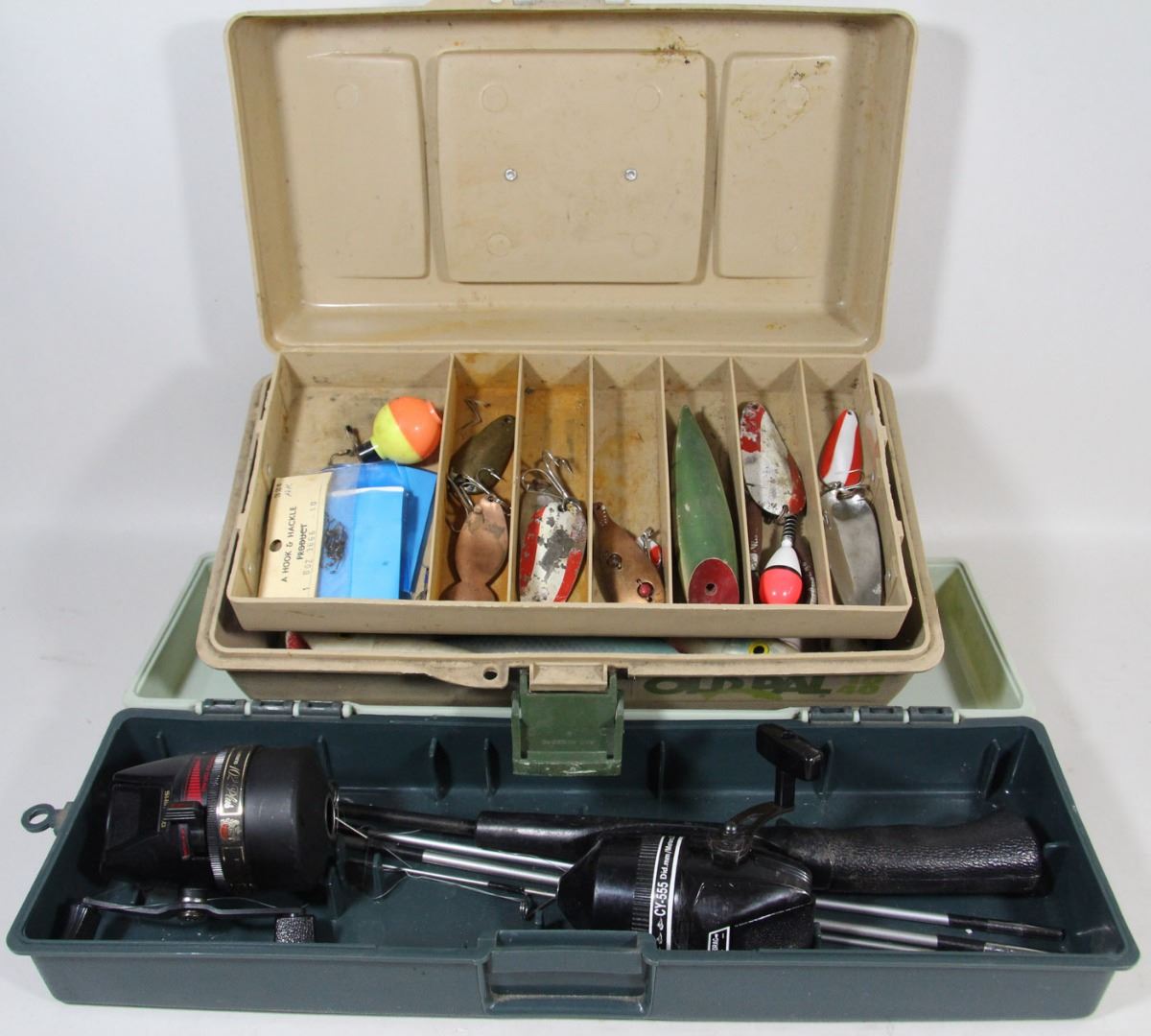 ASSORTMENT OF TACKLE, FISH SCALE, & EXTRA REEL