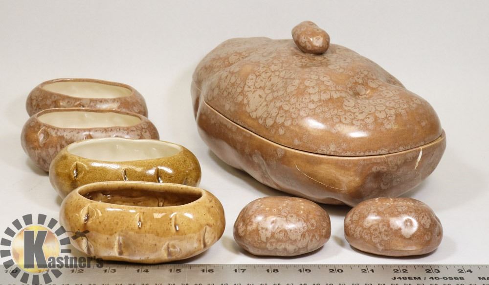 CASSEROLE, 6 BOWLS S&P ***MAJOR DAMAGE, HAS BEEN REPAIRED
