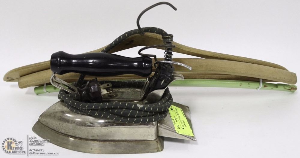 COLLECTIBLE ELECTRIC IRON AND CLOTHES HANGERS