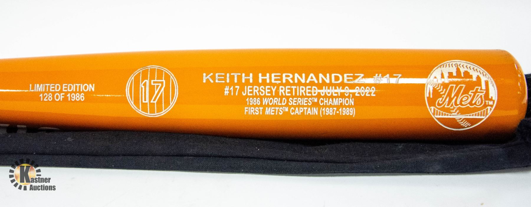 ALL STAR KEITH HERNANDEZ #17 FIRST NEW YORK METS CAPTAIN COMMEMORATIVE BASEBALL BAT - HAS COMPLETE STATS ENGRAVED ON SIDE AND COMES WITH STORAGE BAG **ALL ITEMS MUST BE REMOVED BY 5PM SATURDAY, MAY 6TH 2023. ALL REMAINING ITEMS WILL BE SUBJECT TO A $6.00 PER DAY STORAGE CHARGE. ANY ITEMS REMAINING AFTER MONDAY, MAY 22ND, 2023 WILL BE CONSIDERED FORFEITED. NO REFUNDS WILL BE ISSUED FOR FORFEITED ITEMS. TO SCHEDULE A PICK UP APPOINTMENT CLICK HERE