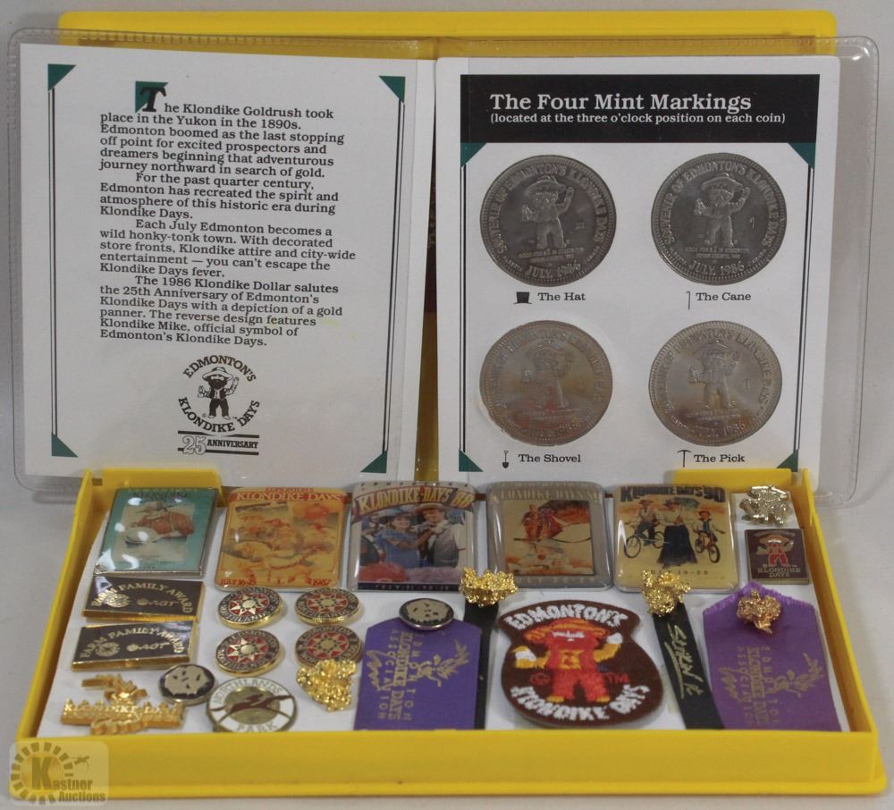 "SILVER ANNIVERSARY" KLONDIKE COIN SET, PINS & MORE