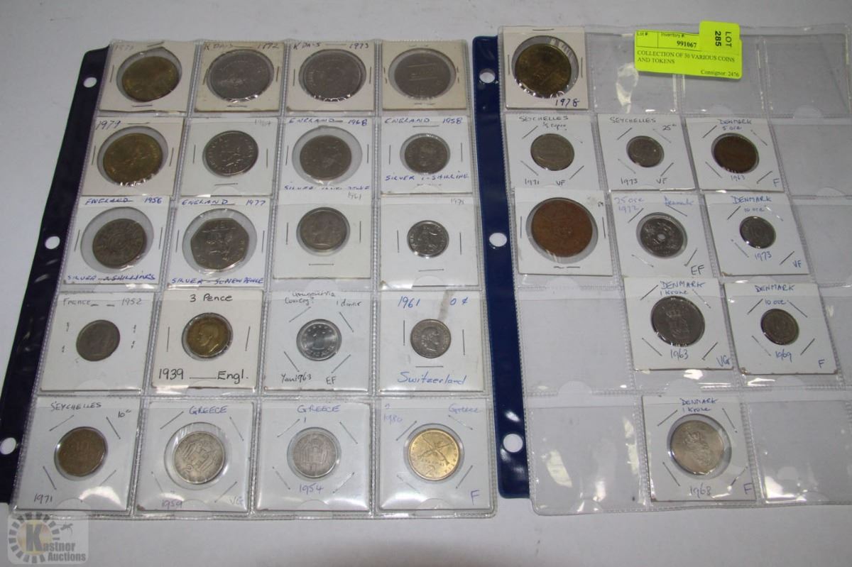 COLLECTION OF 30 VARIOUS COINS AND TOKENS