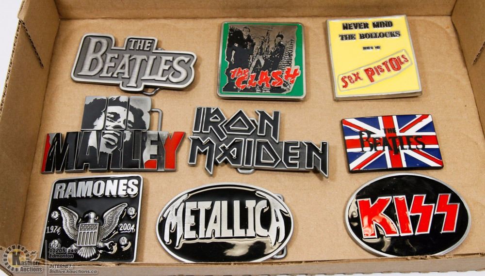 COLLECTION OF 6 ROCK BAND BELT BUCKLES