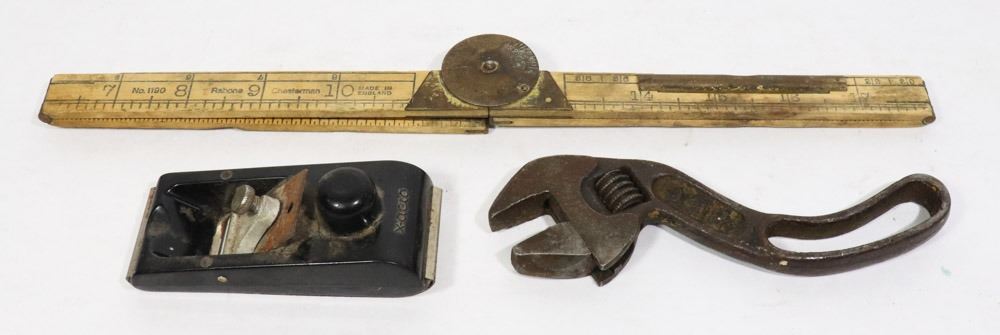 6" B & C S-WRENCH, CHESTERMAN MADE IN ENGLAND LEVEL/ MEASURING STICK, X-ACTO 1" MINI PLANE. COLLECTIBLES